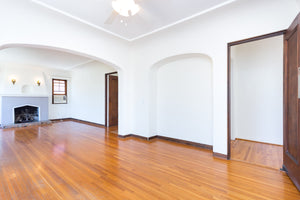 • Living Room with Original Batchelder Tile, Gas Log Fireplace & Coved Ceilings